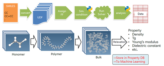 - 「建模 API」(Modeling API)(圖 1):讓使用者可透過 Python 腳本從分子建模到模擬進行全自動操作,無需使用圖形介面 (GUI),並能累積大量的物性資料。